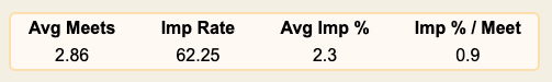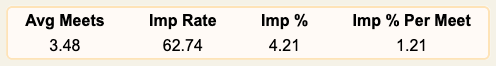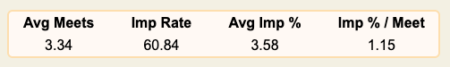 Imp % per Meet: Average improvement per competition